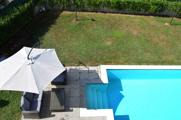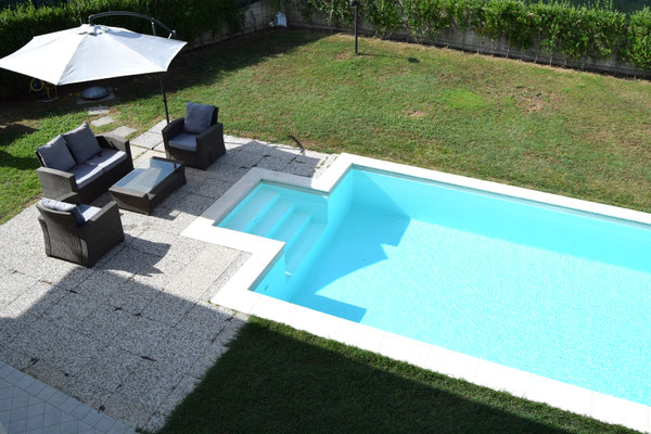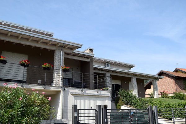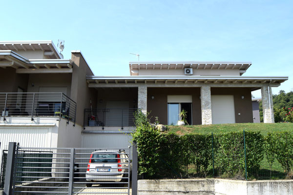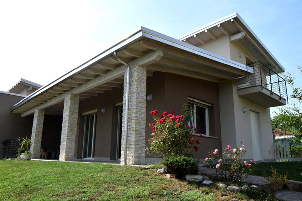 Costruita nel 2012 a Dormelletto, in via Monte Rosa, questa villetta bifamiliare è dotata di una comoda piscina in giardino.