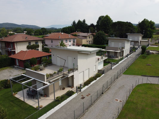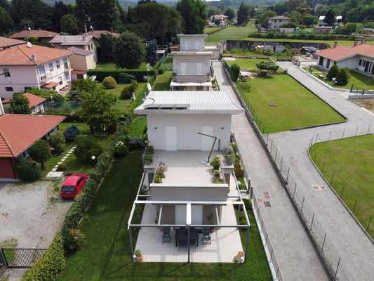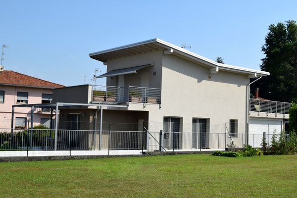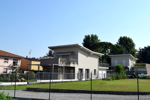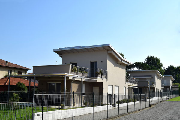 Tre villette singole in via Impiove a Sesto Calende. Le tre abitazioni sono dotate di pannelli solari. Classe energetica: B.